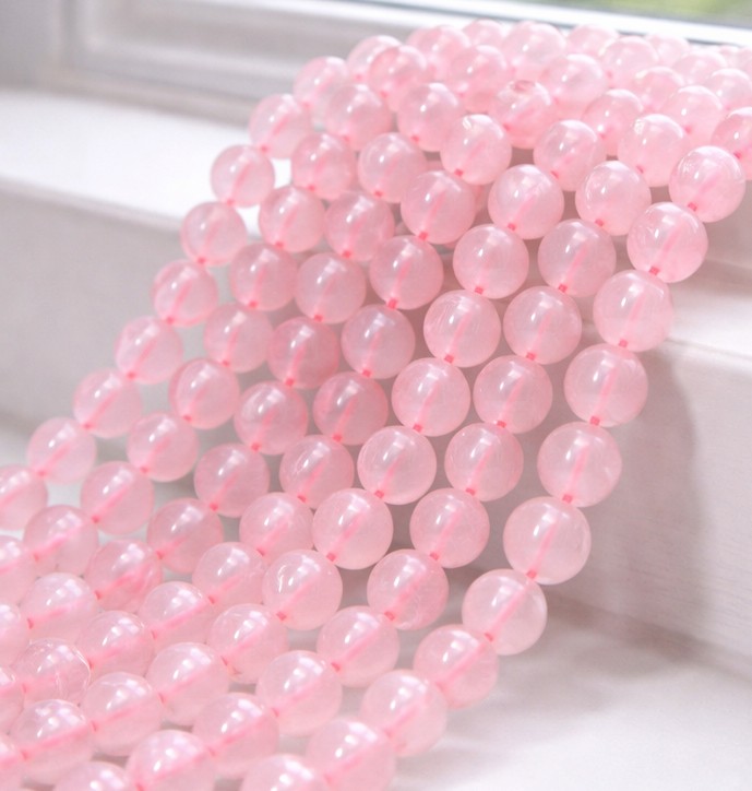 Produktinformationen "Natürlicher kurzer zartrosa Rosenquarz Perlenstrang rund glatt glänzend 8 - 8,3 mm (ca. 24 Perlen / ca. 20"