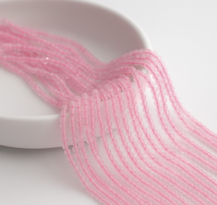 Natürlicher zierlicher Rosenquarz Perlenstrang facettiert 2,4 mm (ca. 182 Perlen / ca. 38,5 cm Länge)