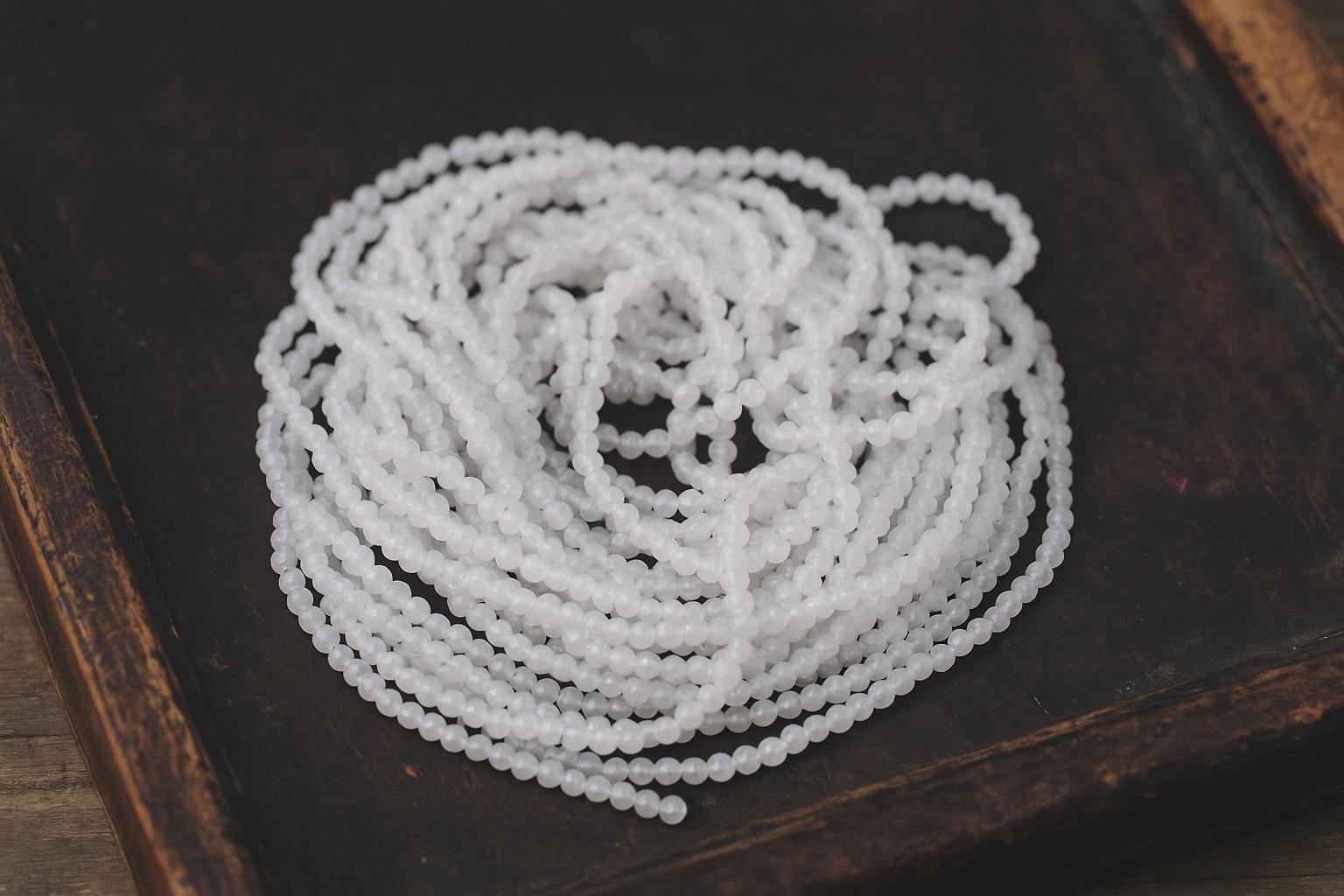 Produktinformationen "Natürlicher zierlicher weißer Jade Perlenstrang rund glatt 2 mm (ca. 184 Perlen / ca. 41,5 cm Länge)"