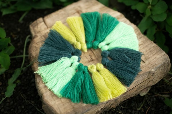 Polyester Baumwoll Quasten Set mit 40 Quasten 28 - 34 x 5 mm verschiedene Grüntöne