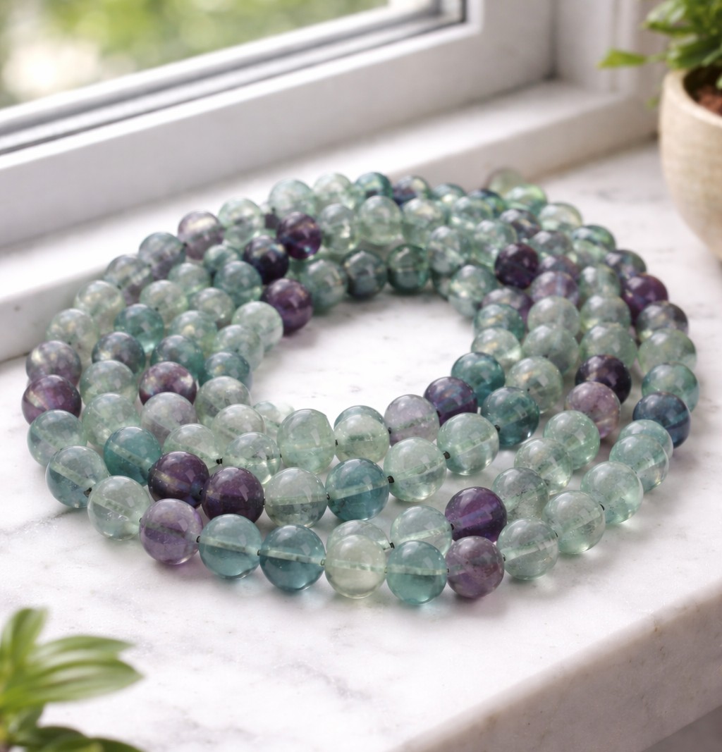 Produktinformationen "Regenbogen Fluorit Perlenstrang 8,5 - 8,6 mm (ca. 46 Perlen / ca. 39 cm Länge)"