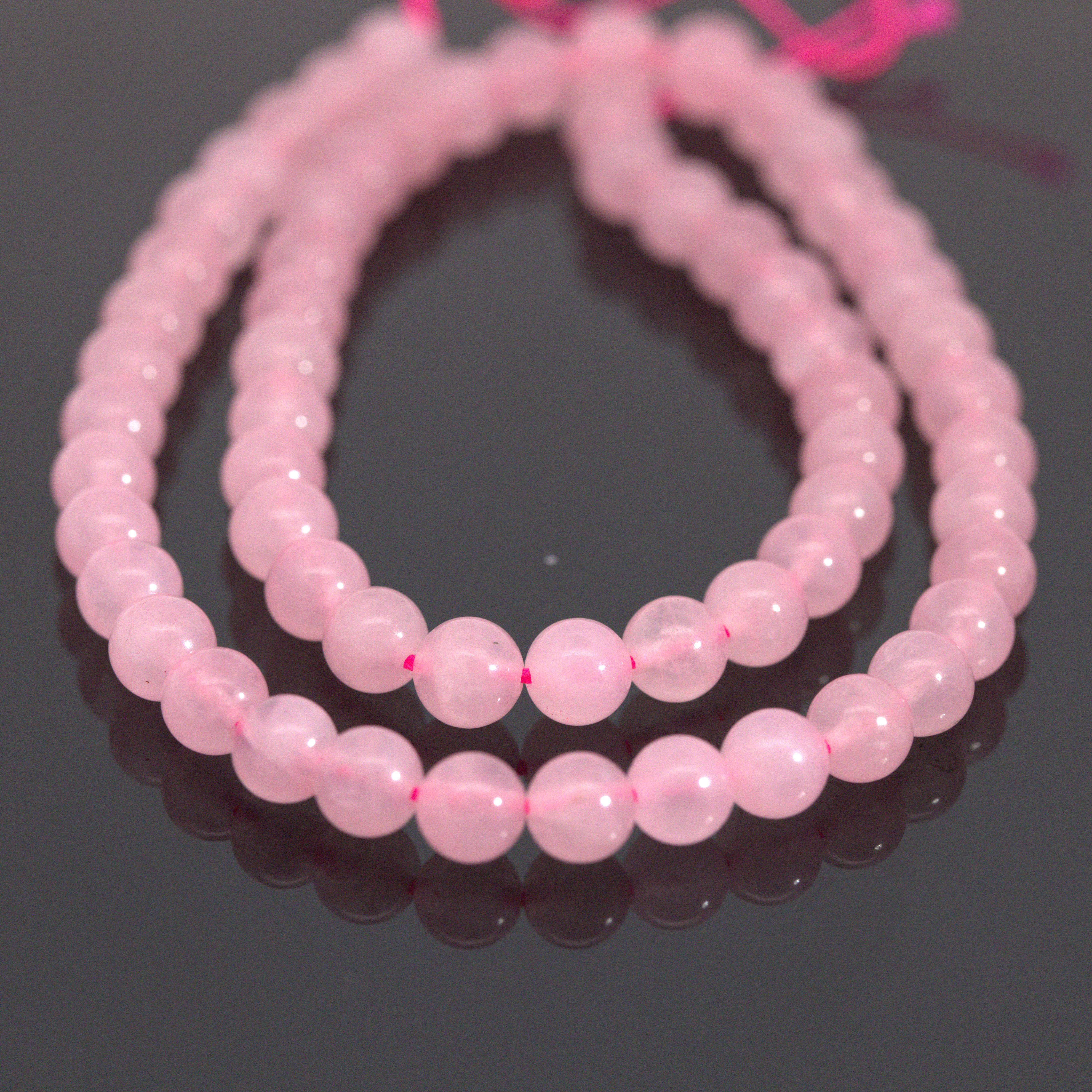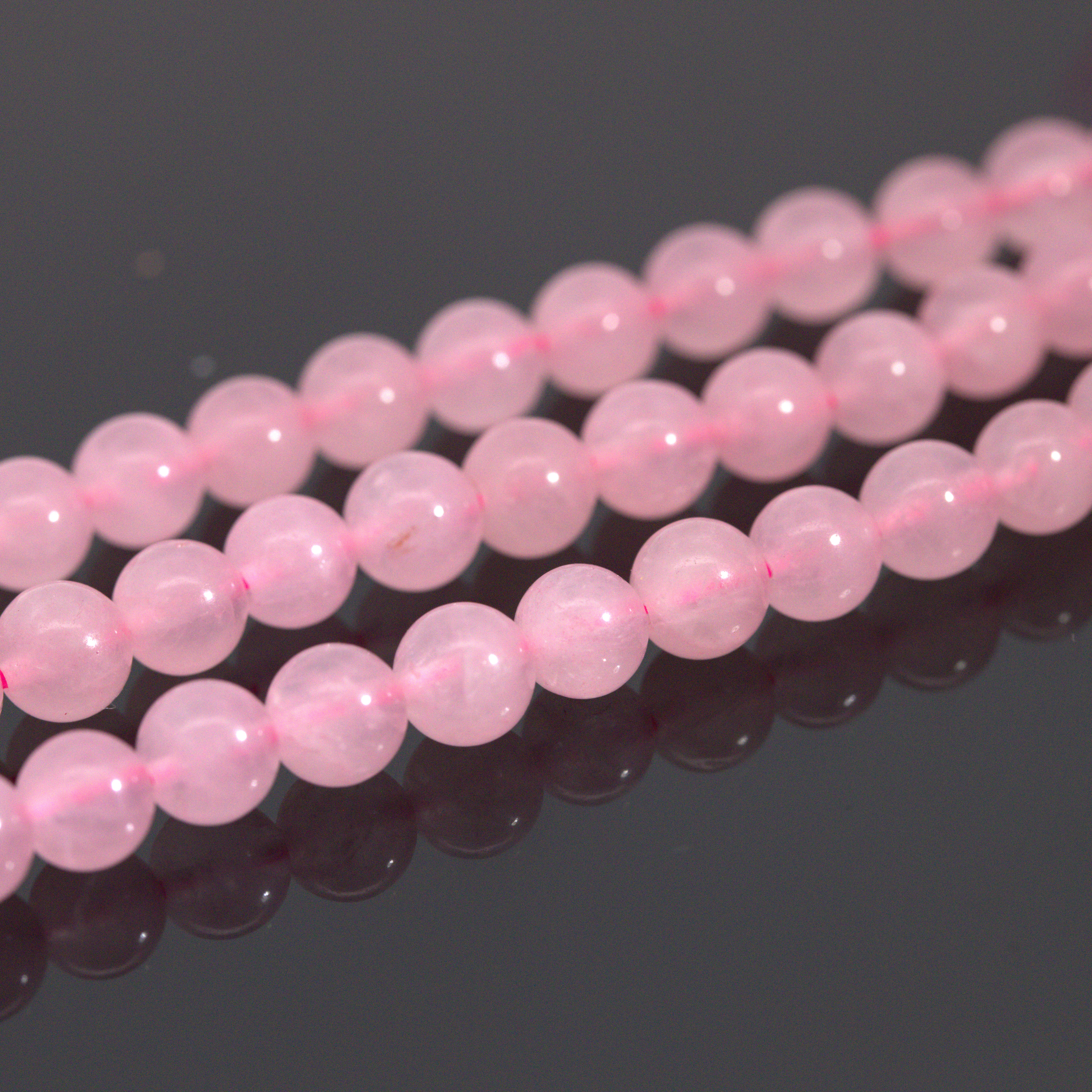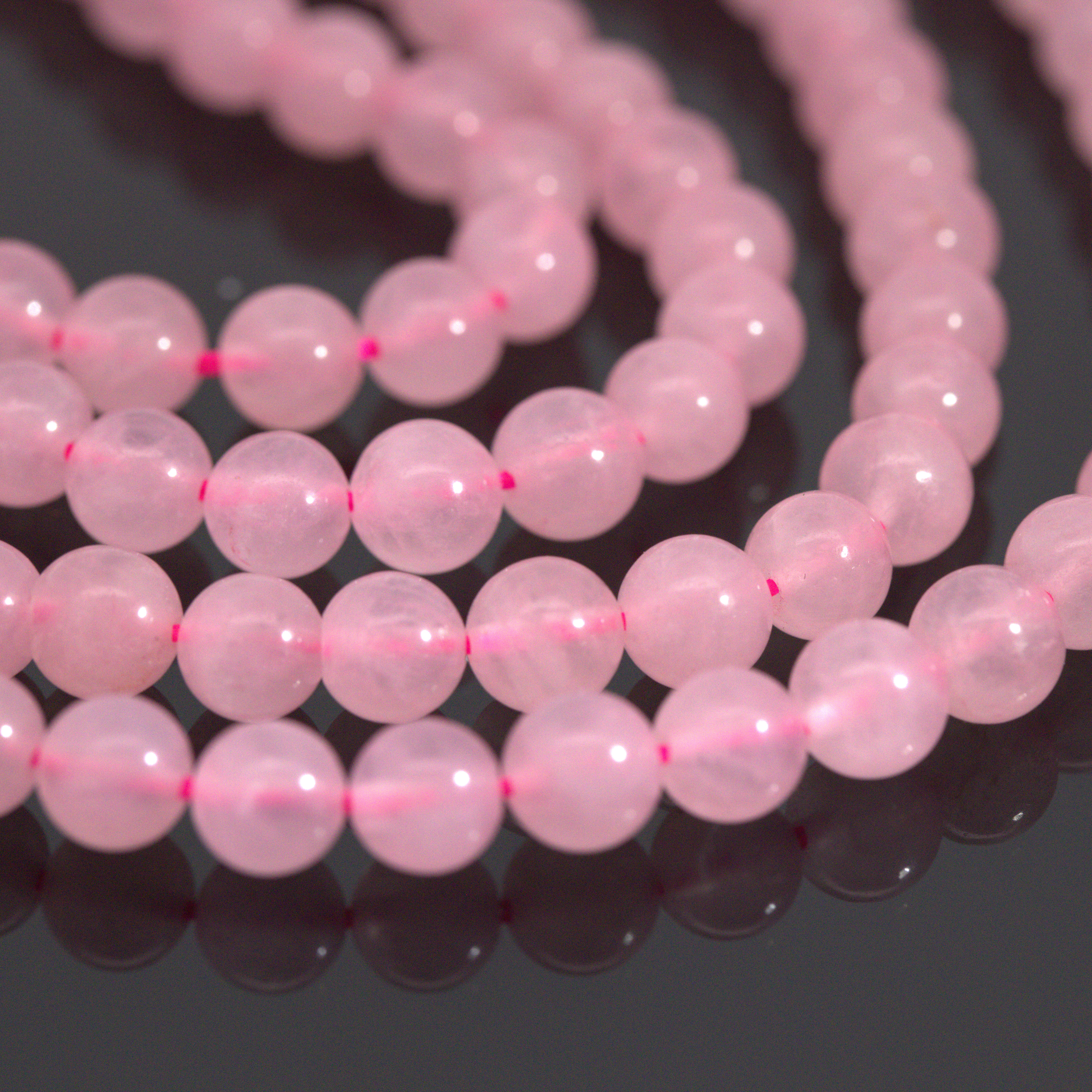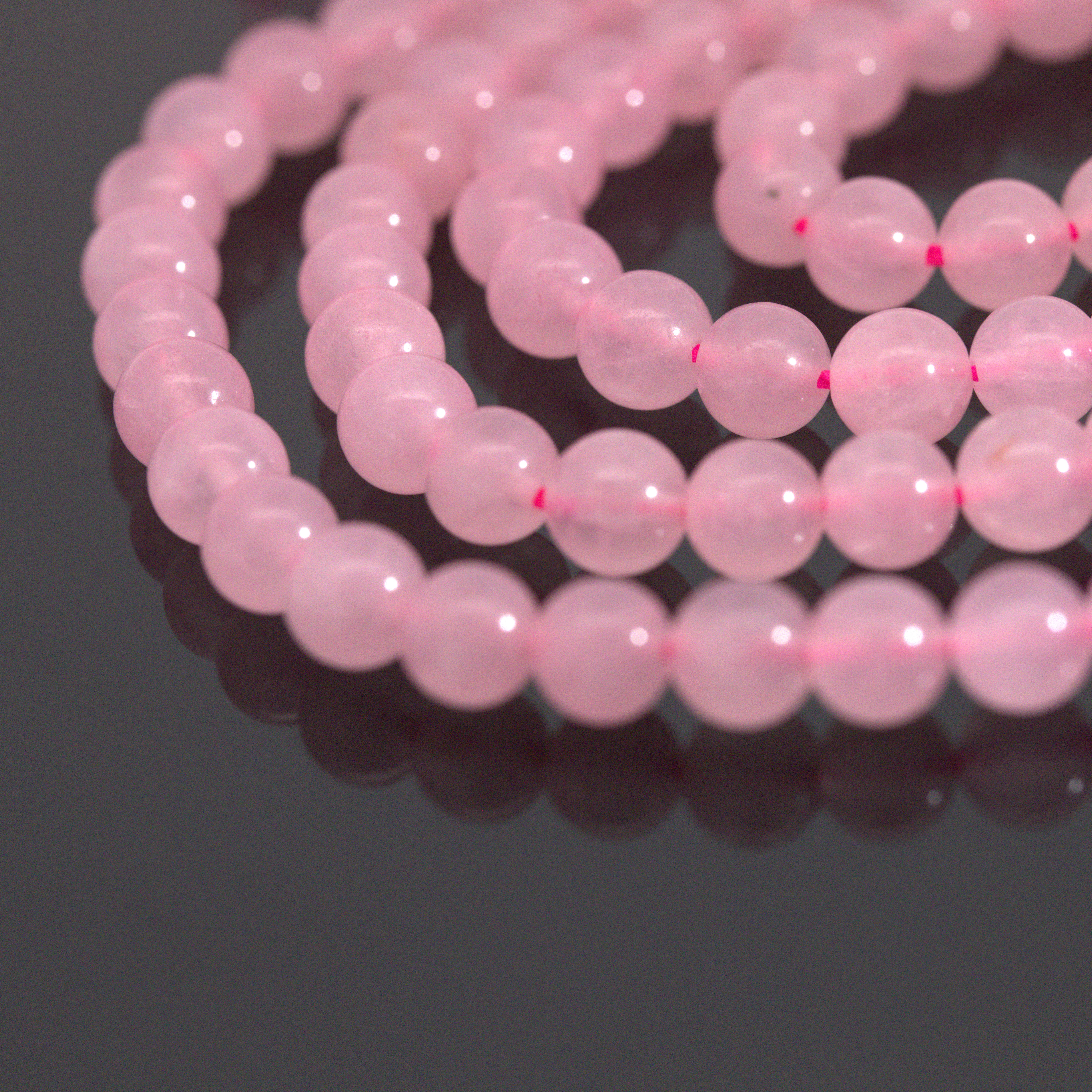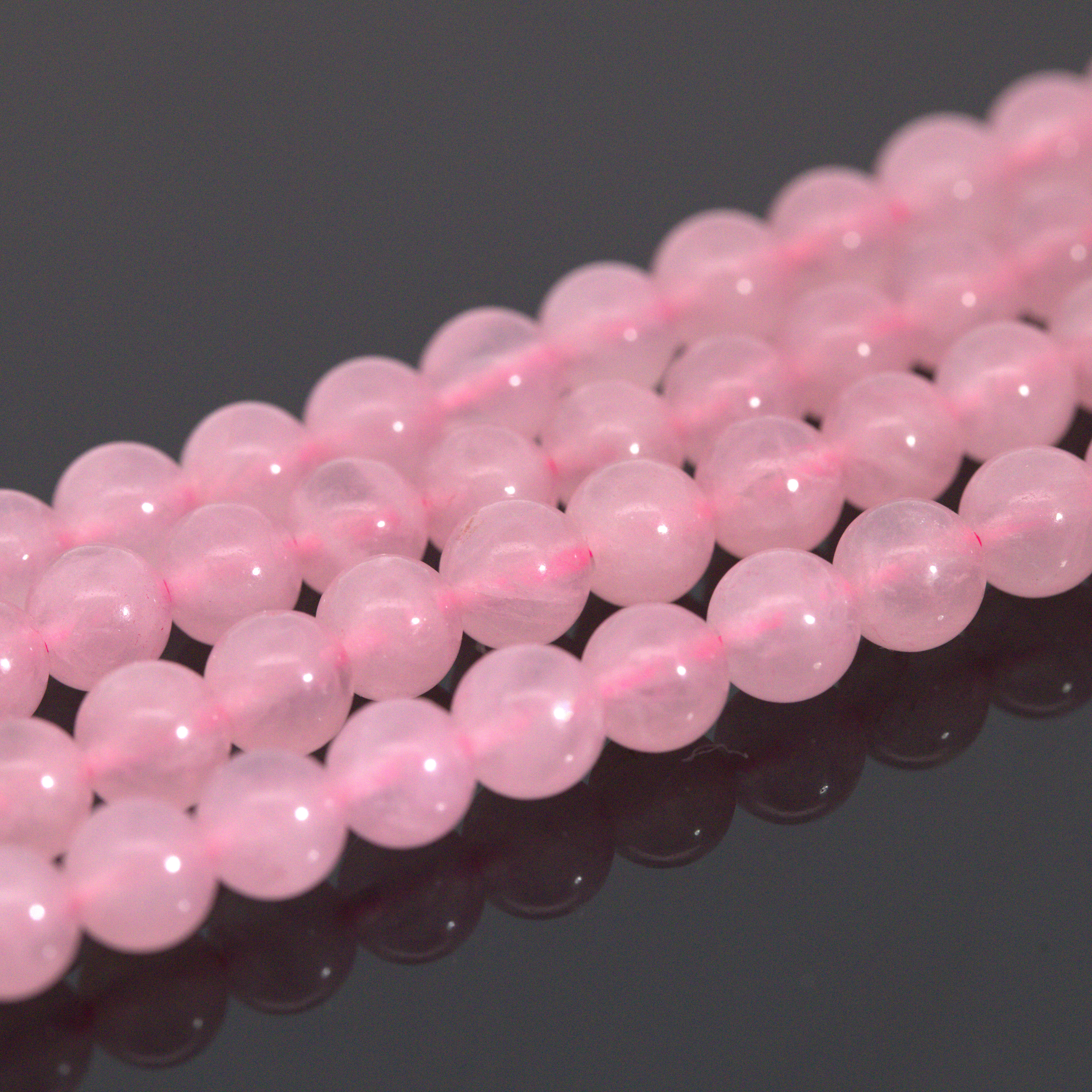 Rosenquarz Perlenstrang 6,5 mm rund glatt (ca. 59 Perlen / ca. 39 cm Länge)