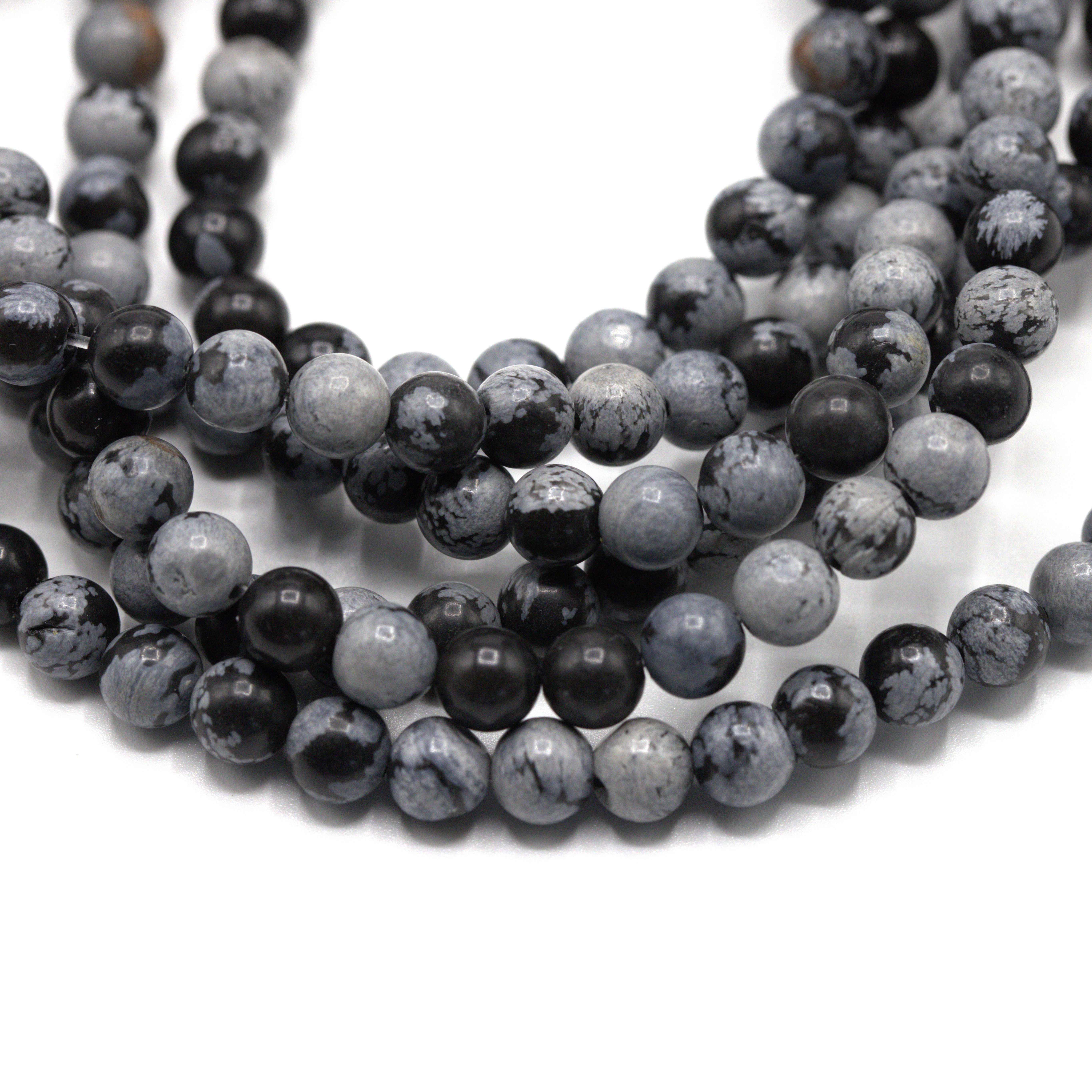 Produktinformationen "Schneeflocken Obsidian Perlenstrang 6,5 - 6,6 mm rund glatt (ca. 59 Perlen / ca. 39 cm Länge)"