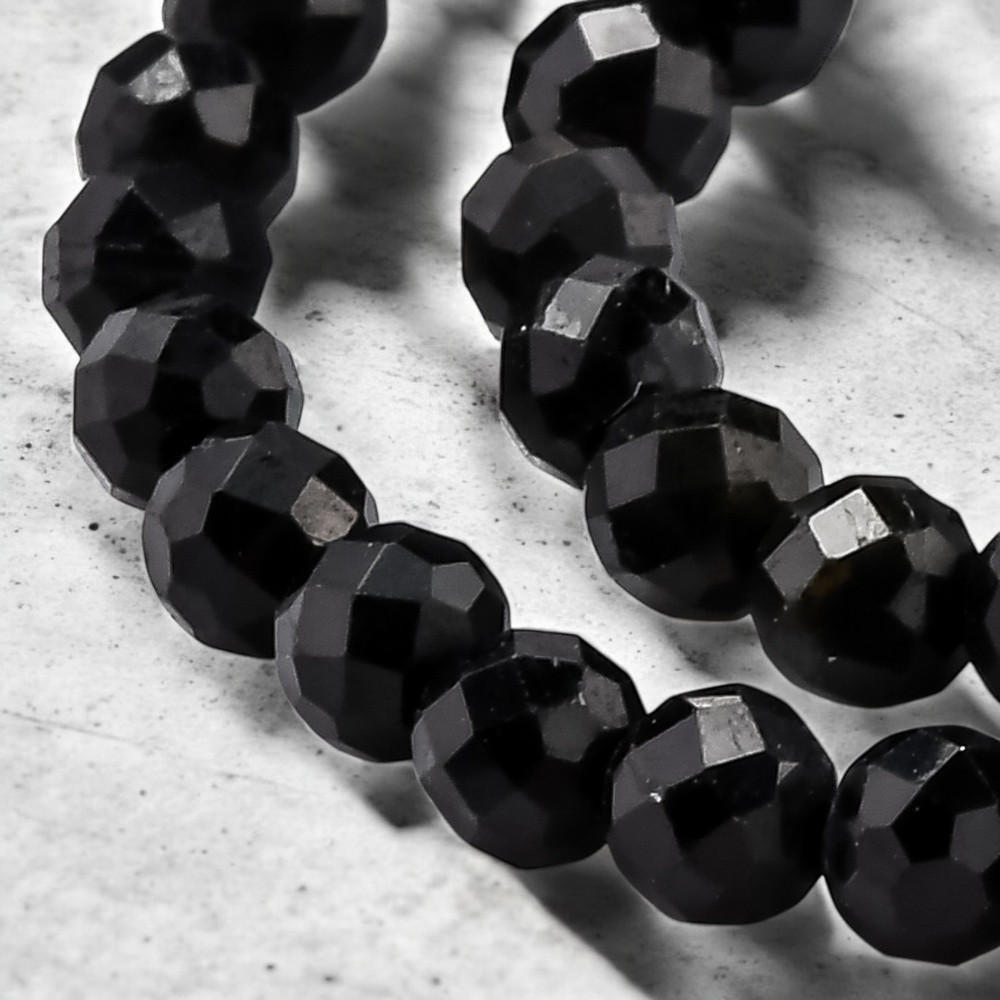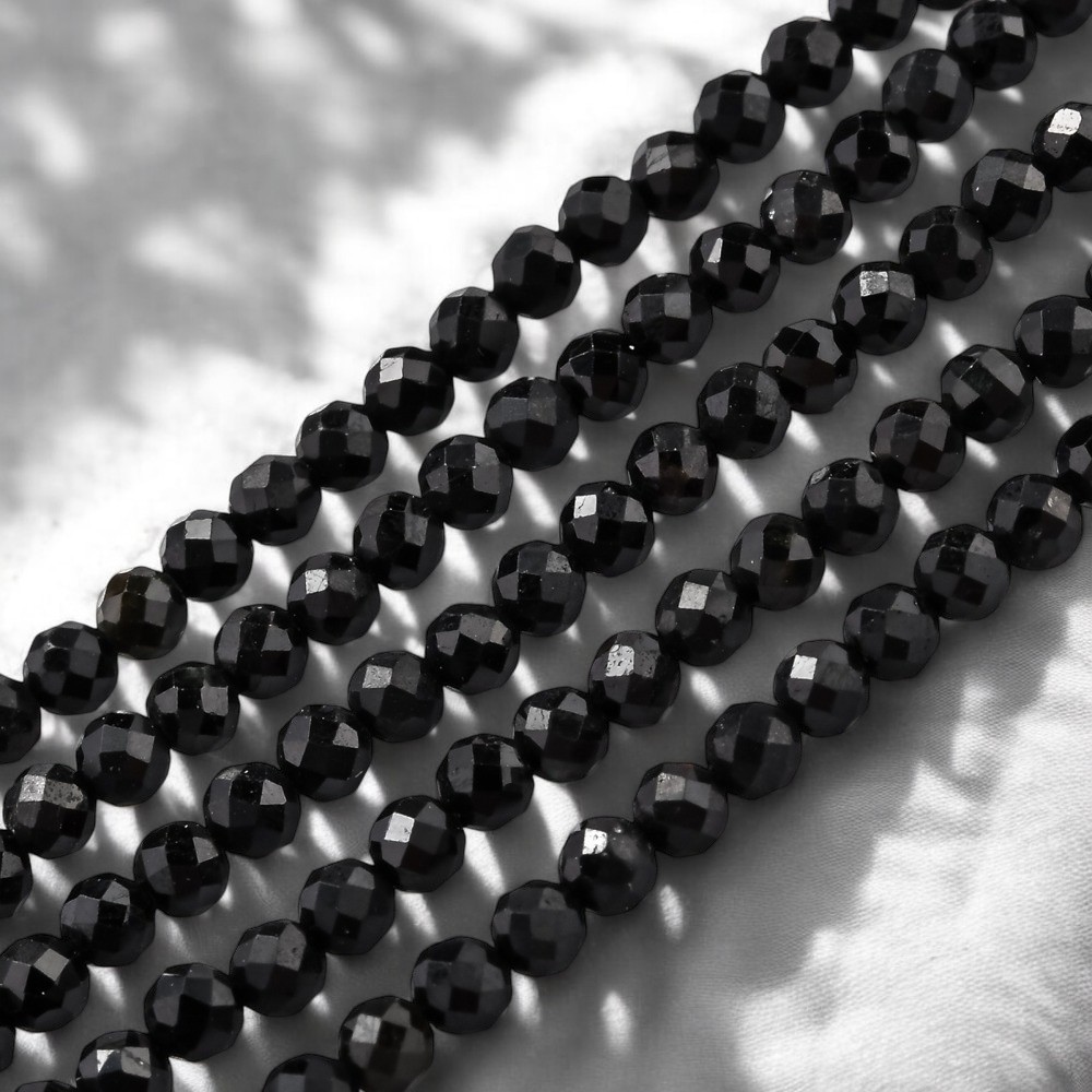 Schwarzer Turmalin Perlenstrang 2,9 mm facettiert (ca. 120 Perlen / ca. 39 cm Länge)