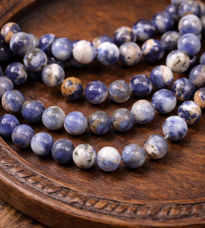 Natürlicher Sodalith Perlenstrang 8,5 - 8,7 mm rund glatt glänzend (ca. 45 Perlen / ca. 37,5 cm Länge)