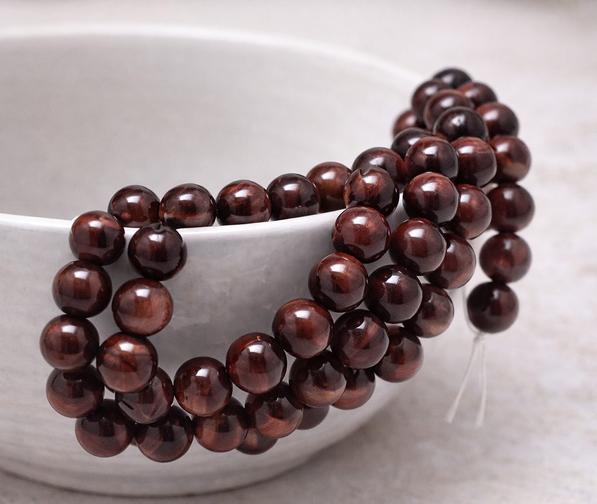 Natürlicher Tigeraugen Perlenstrang rund glatt glänzend 6,4 mm (ca. 62 Perlen / ca. 39 cm Länge)