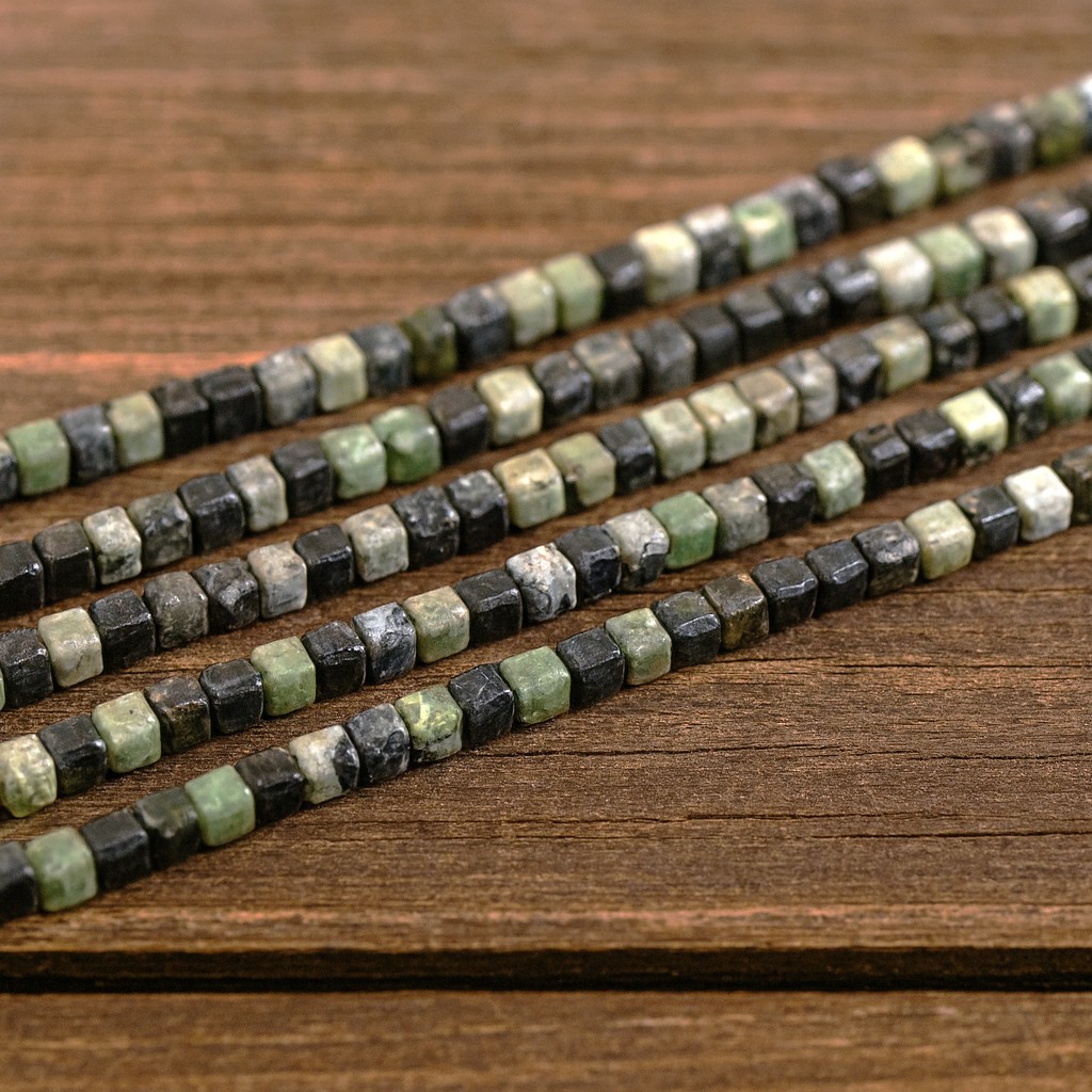 Produktinformationen "Variscit Perlenstrang 2,5 x 2,5 x 2,5 mm Würfel (ca. 150 Perlen / ca. 38 cm Länge)"
