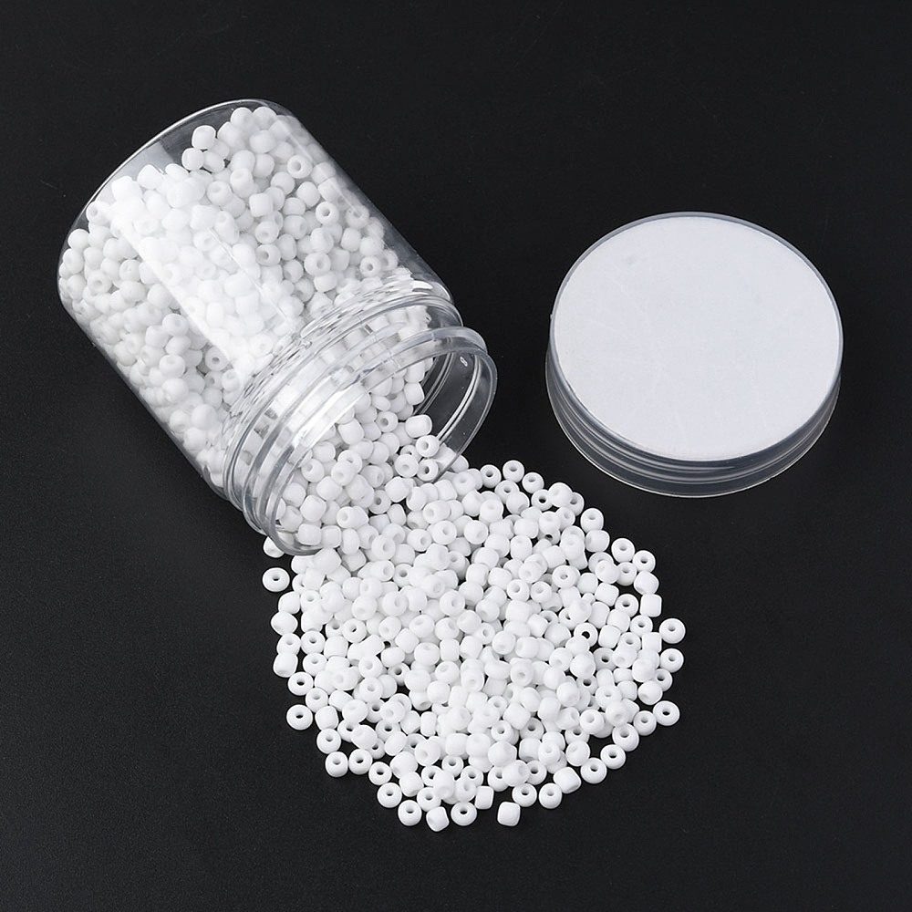 Produktinformationen "Vorteilspackung 1300 Stück 6/0 Rocailles weiß opak 4 mm im praktischen Behälter"