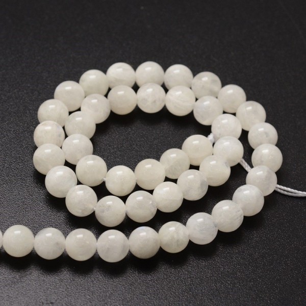Weißer Mondstein Perlenstrang 6,5 - 6,6 mm (ca. 61 Perlen / ca. 39 cm Länge)