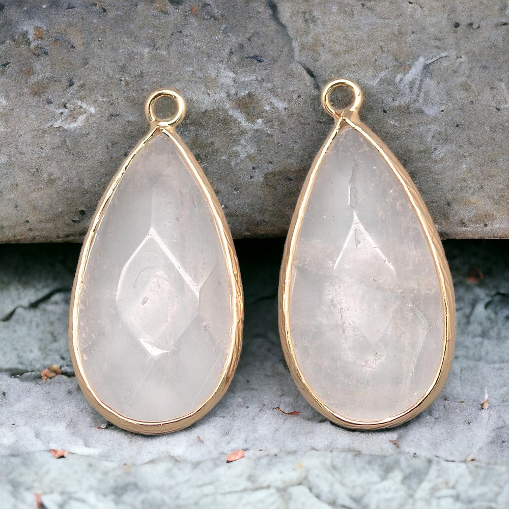 Weißer Naturquarz Anhänger mit goldfarbener Metalleinfassung 33 x 16 x 6 mm