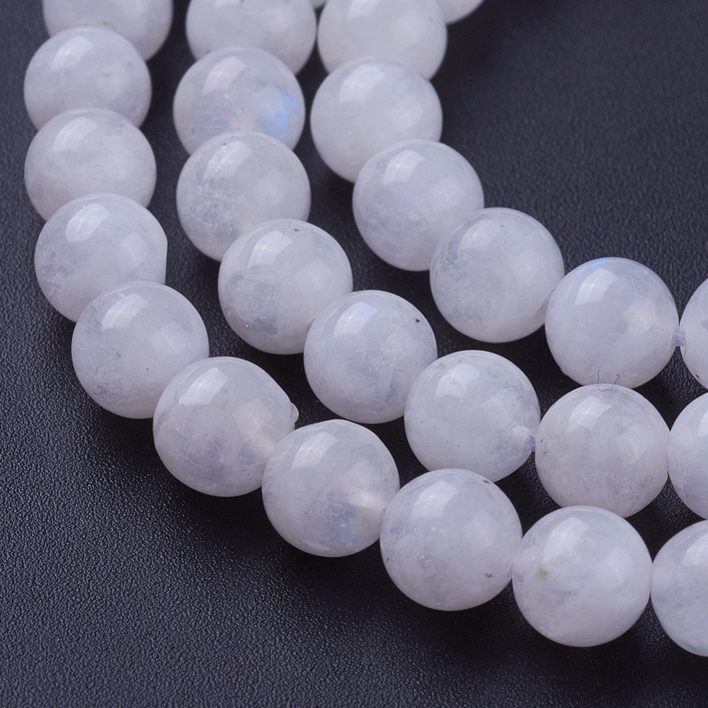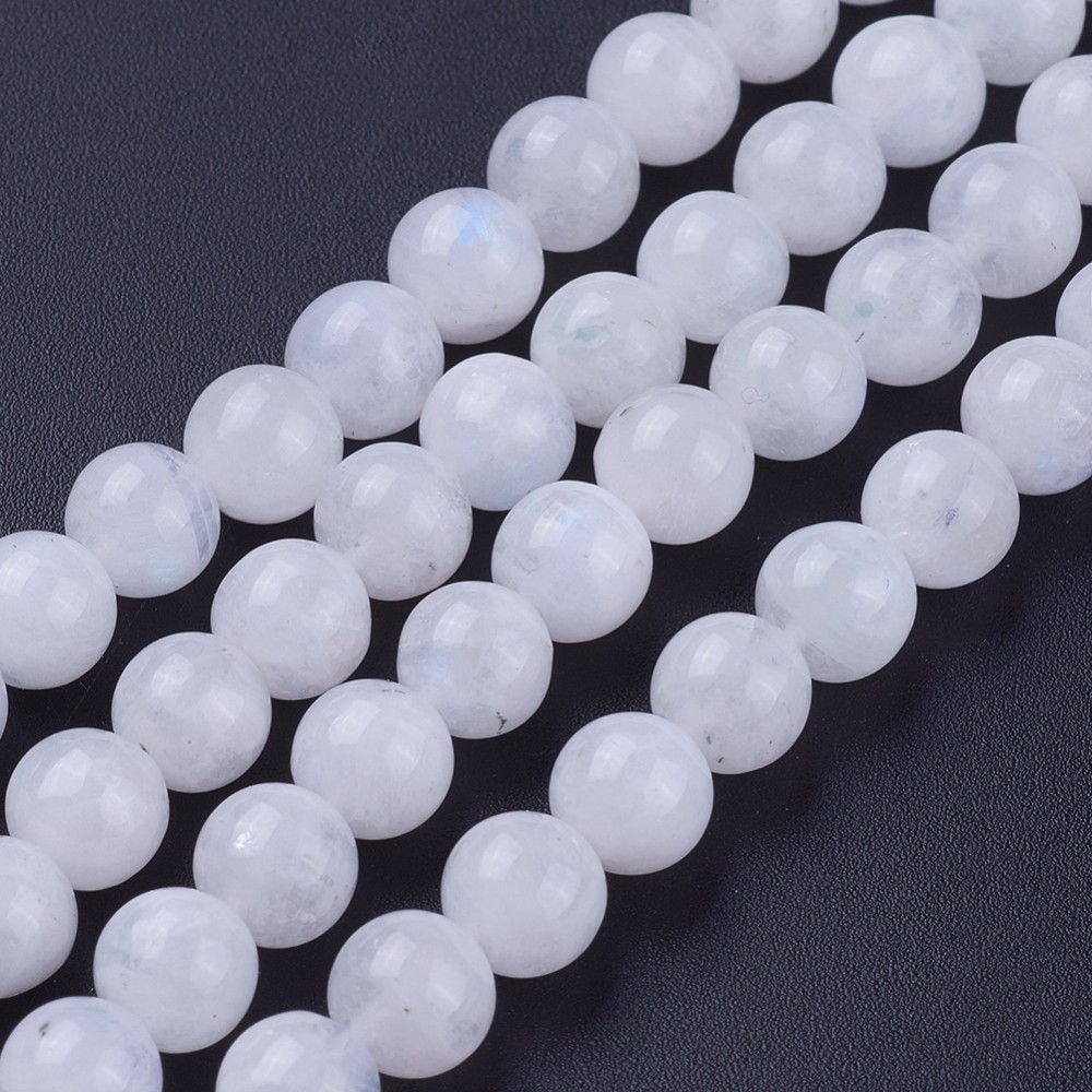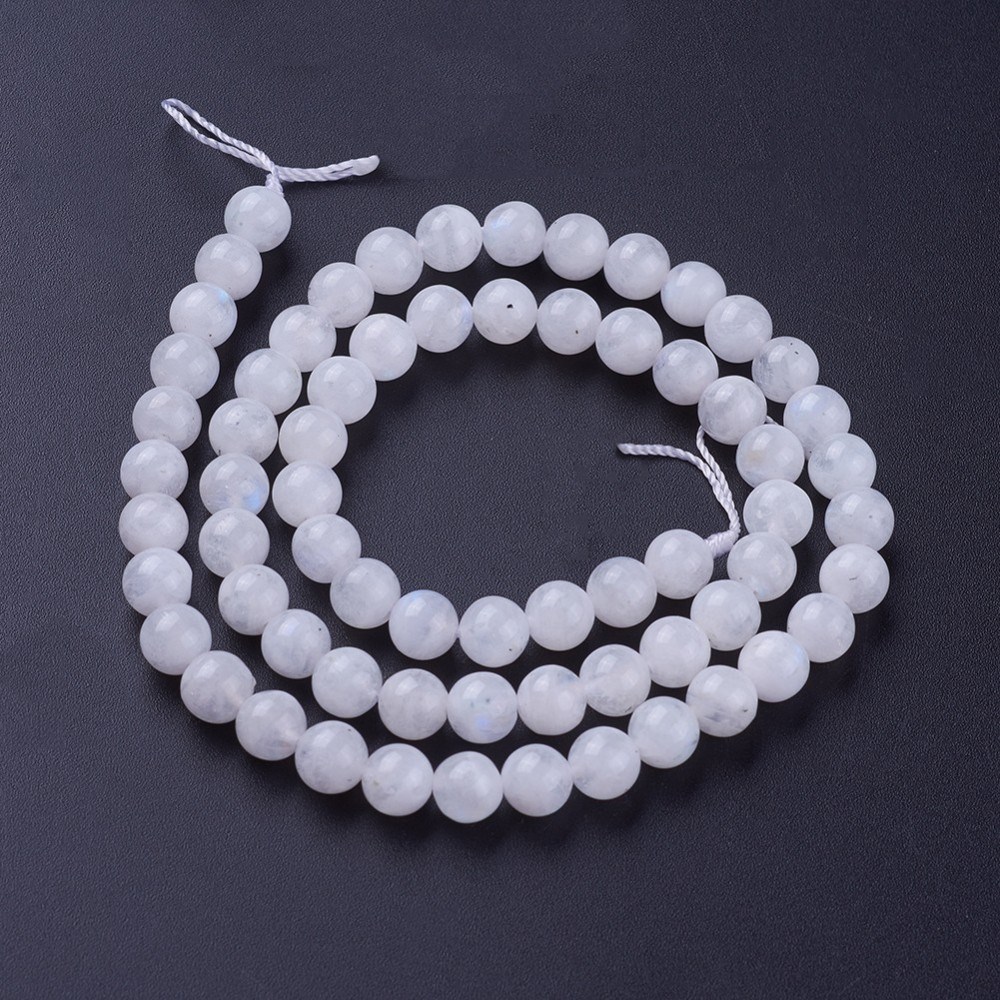 Weißer Regenbogen Mondstein Perlenstrang 6,5 mm (ca. 62 Perlen / ca. 39 cm Länge)