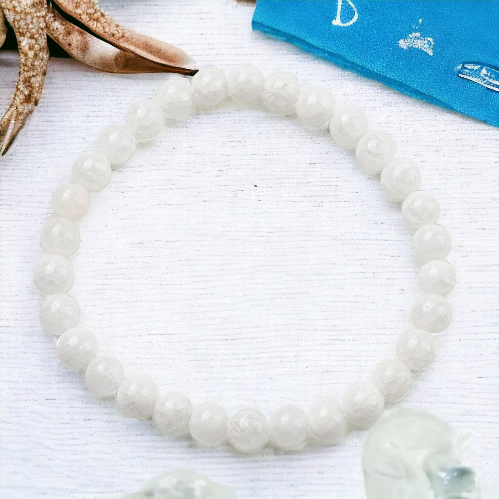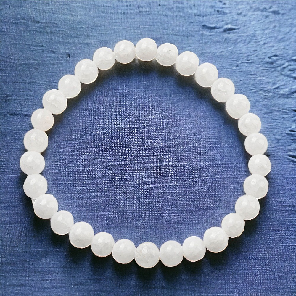 Weißes Jadeperlenarmband 6 - 6,5 mm mit elastischem Band