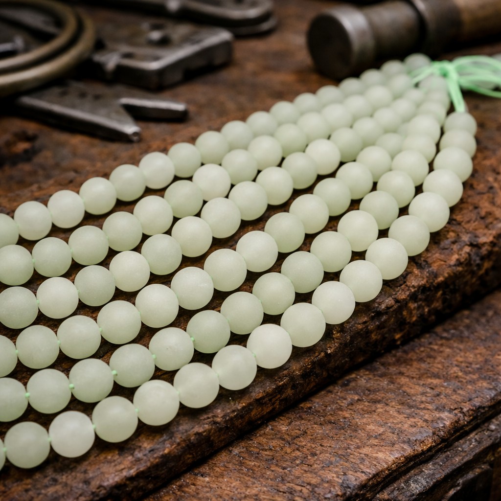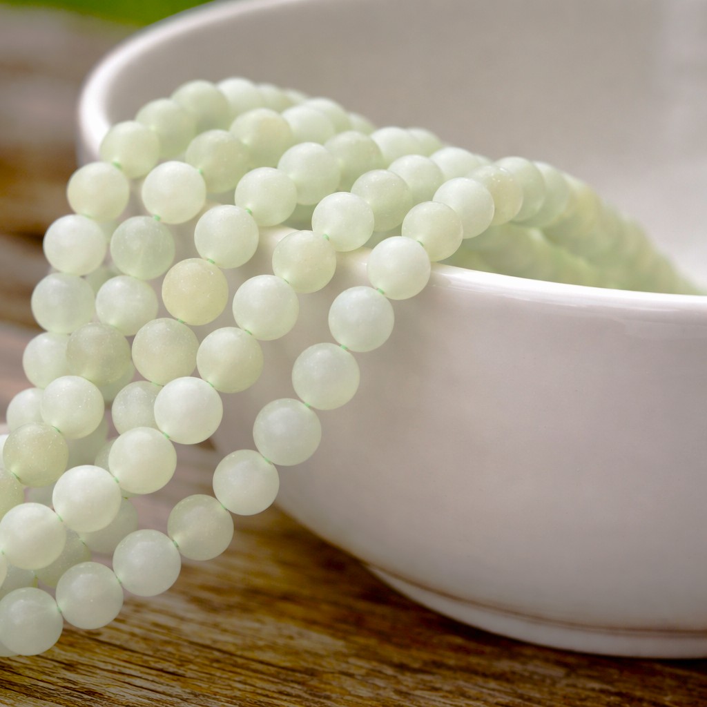 Zartgrüner matter gefrosteter Aventurin Perlenstrang 8 - 8,5 mm (ca. 45 Perlen / ca. 38 cm Länge)