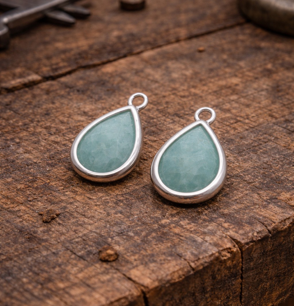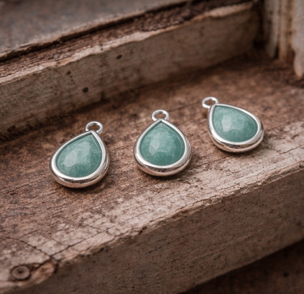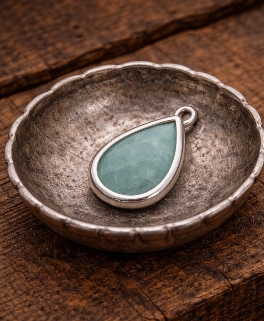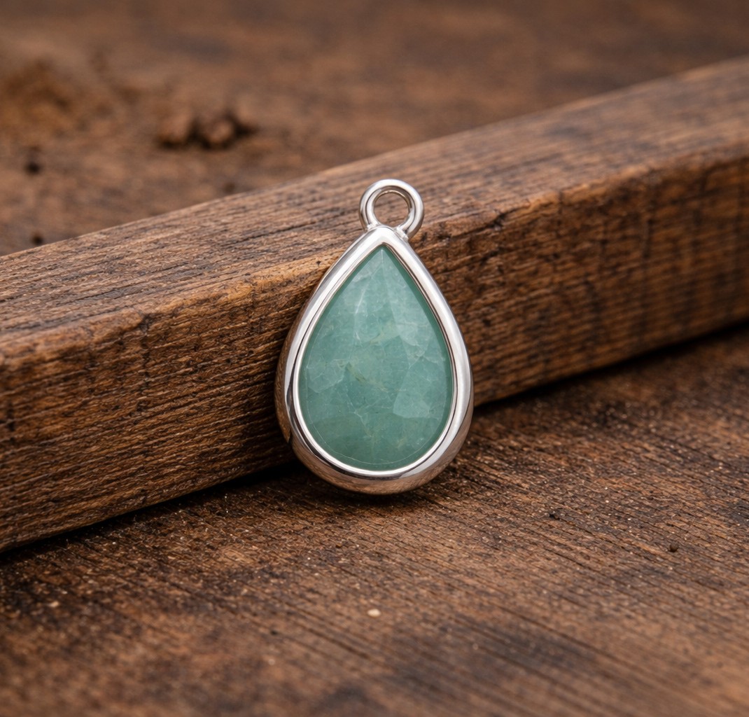 Zierlicher Amazonit Anhänger mit silberfarbener Metalleinfassung 14 x 9,5 x 4 mm