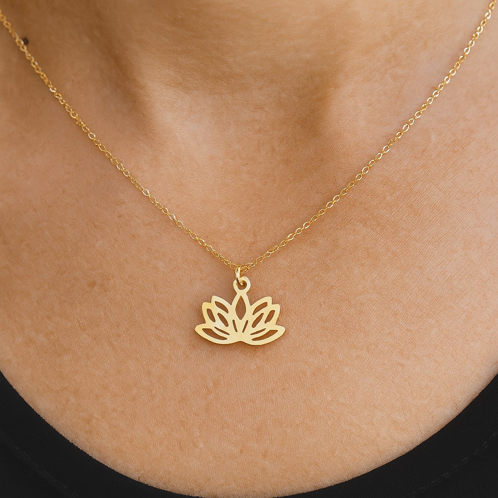 Zierlicher Edelstahl Charm Anhänger Lotusblume 7,5 x 10 x 1 mm