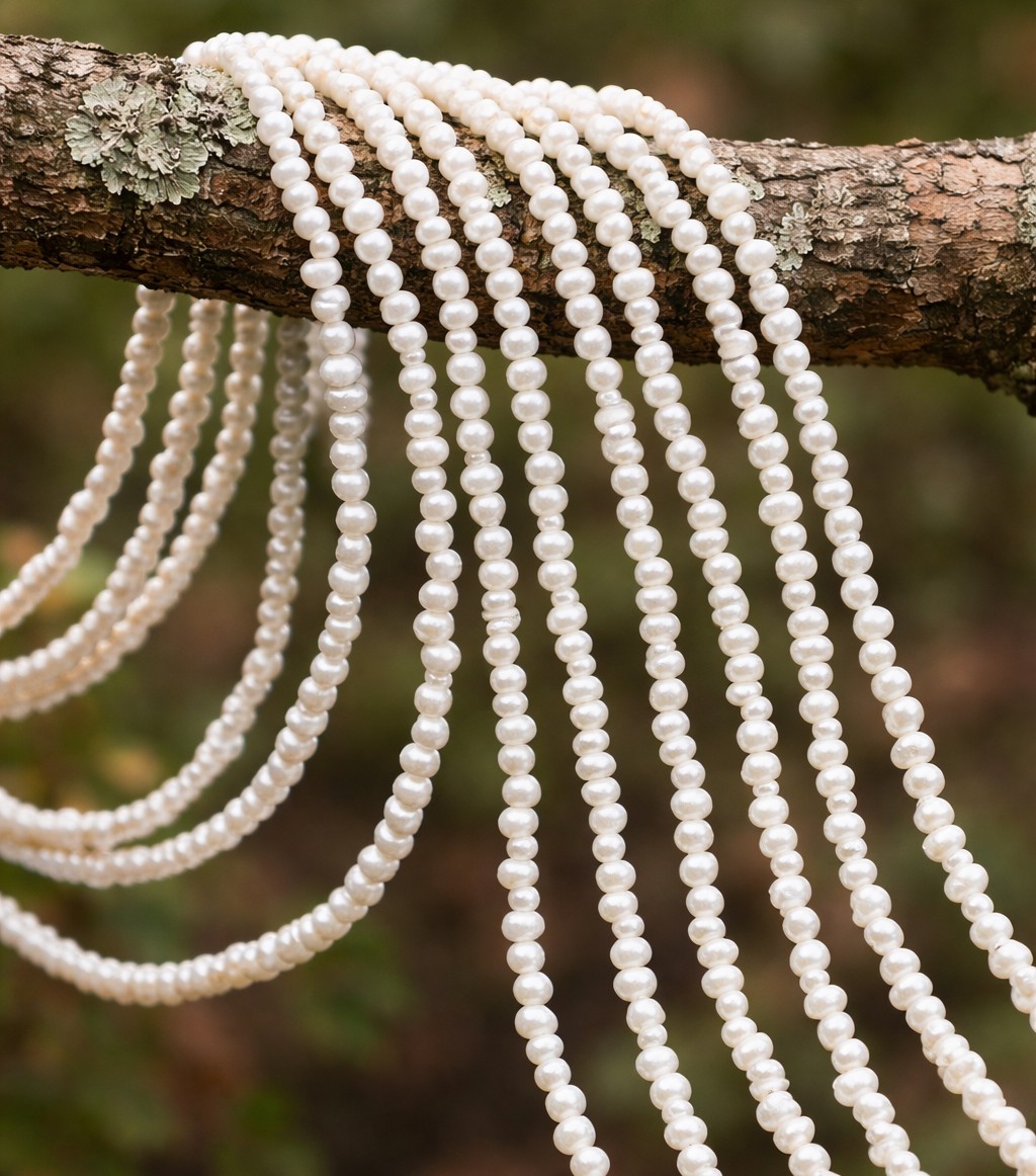 Zierlicher Süßwasser Zuchtperlenstrang 2 - 3 x 1,5 - 2,5 mm (ca. 35 cm Länge)