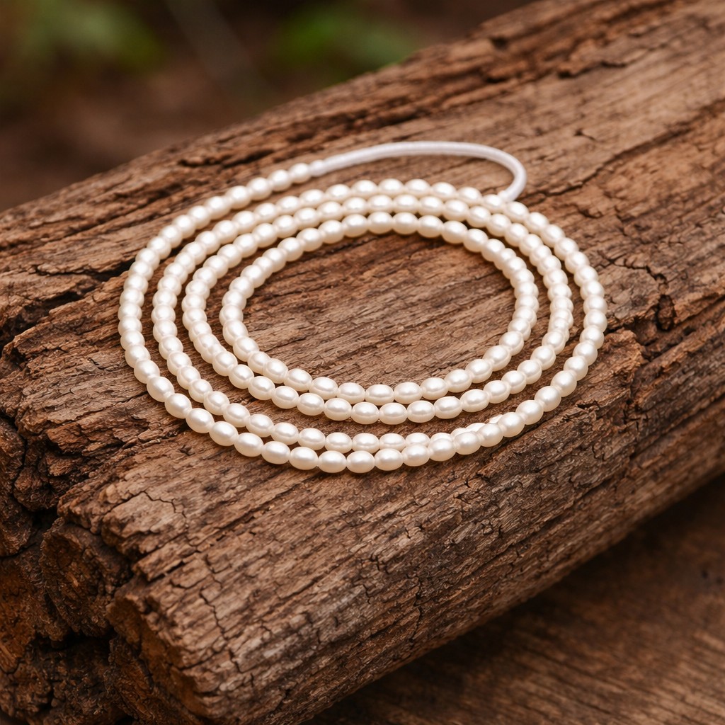 Zierlicher Süßwasser Zuchtperlenstrang 3 - 4 x 2,5 mm (ca. 38 cm Länge)